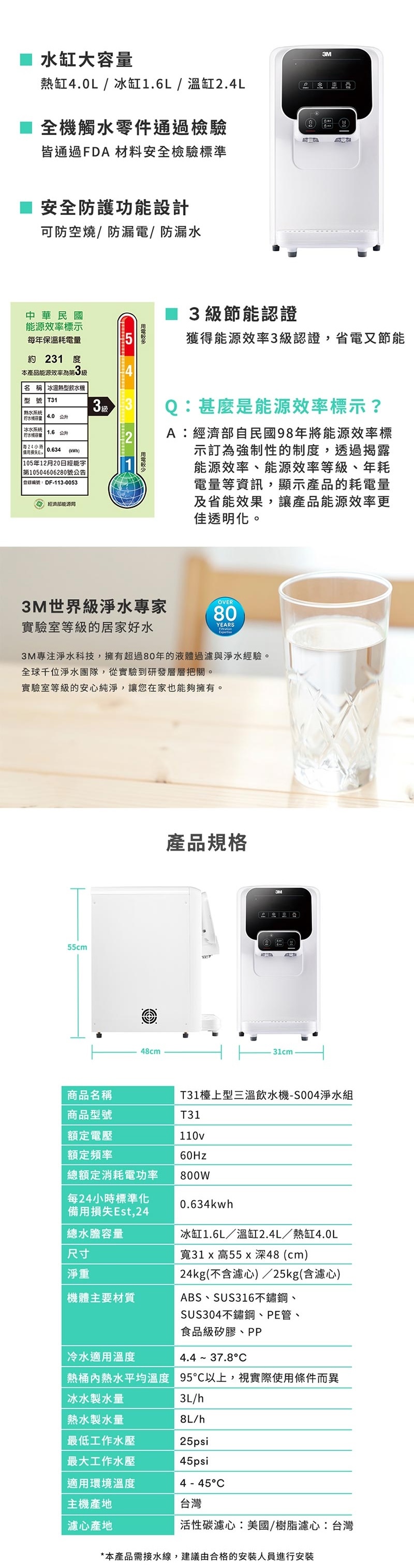 | 出水溫度 | 冰水・溫水・100℃|即開即飲|冰溫熱水皆經煮沸 |