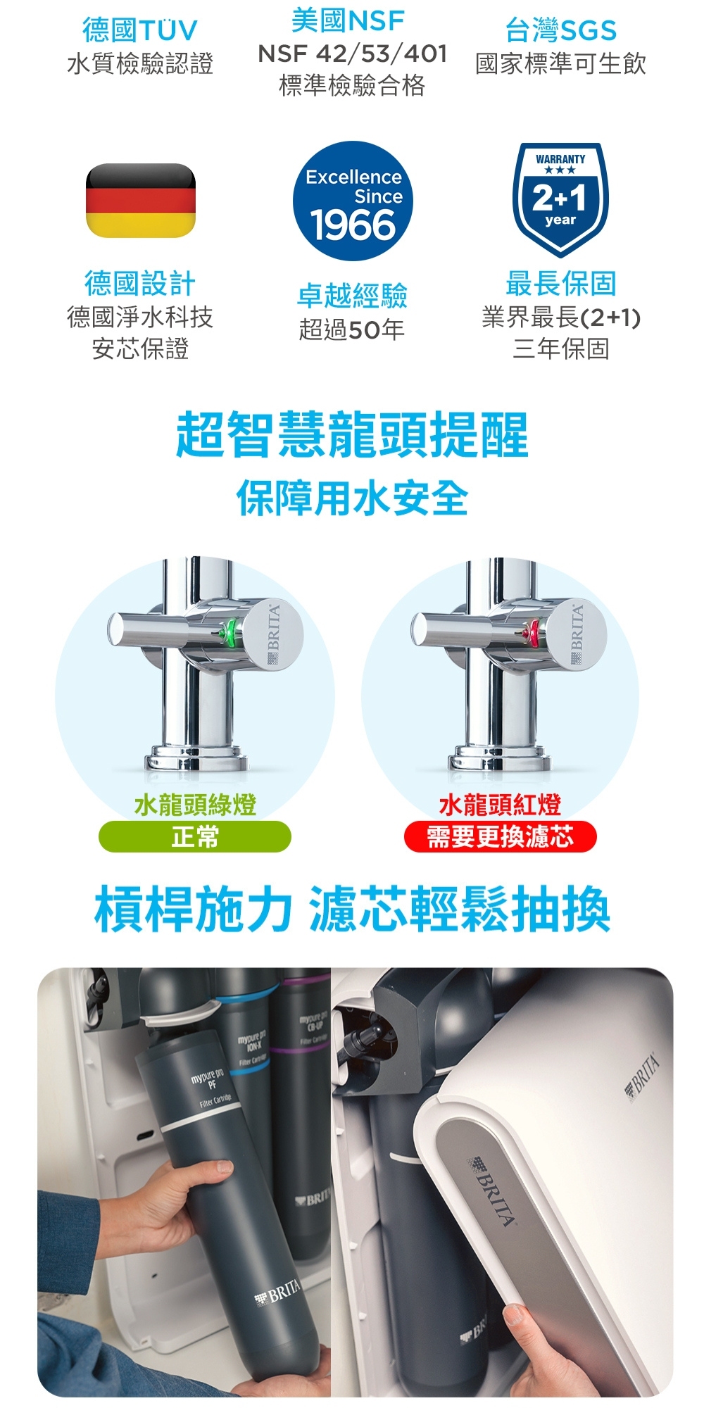 | 商品保固 | 自安裝日起享有 2 年保固,至 BRITA 官網完成註冊可延長至 3 年。 |