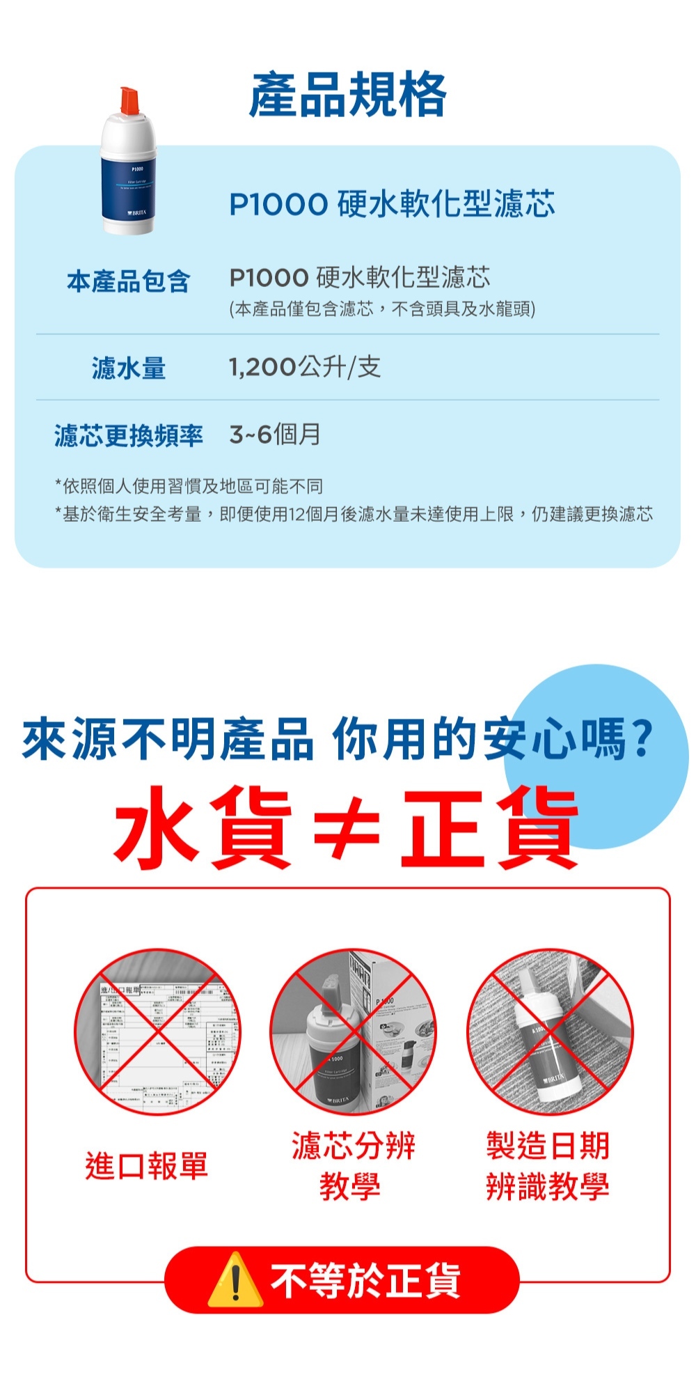 | 注意事項 1 | 本產品僅包含濾芯,不含濾芯頭座、龍頭等相關配件。 |