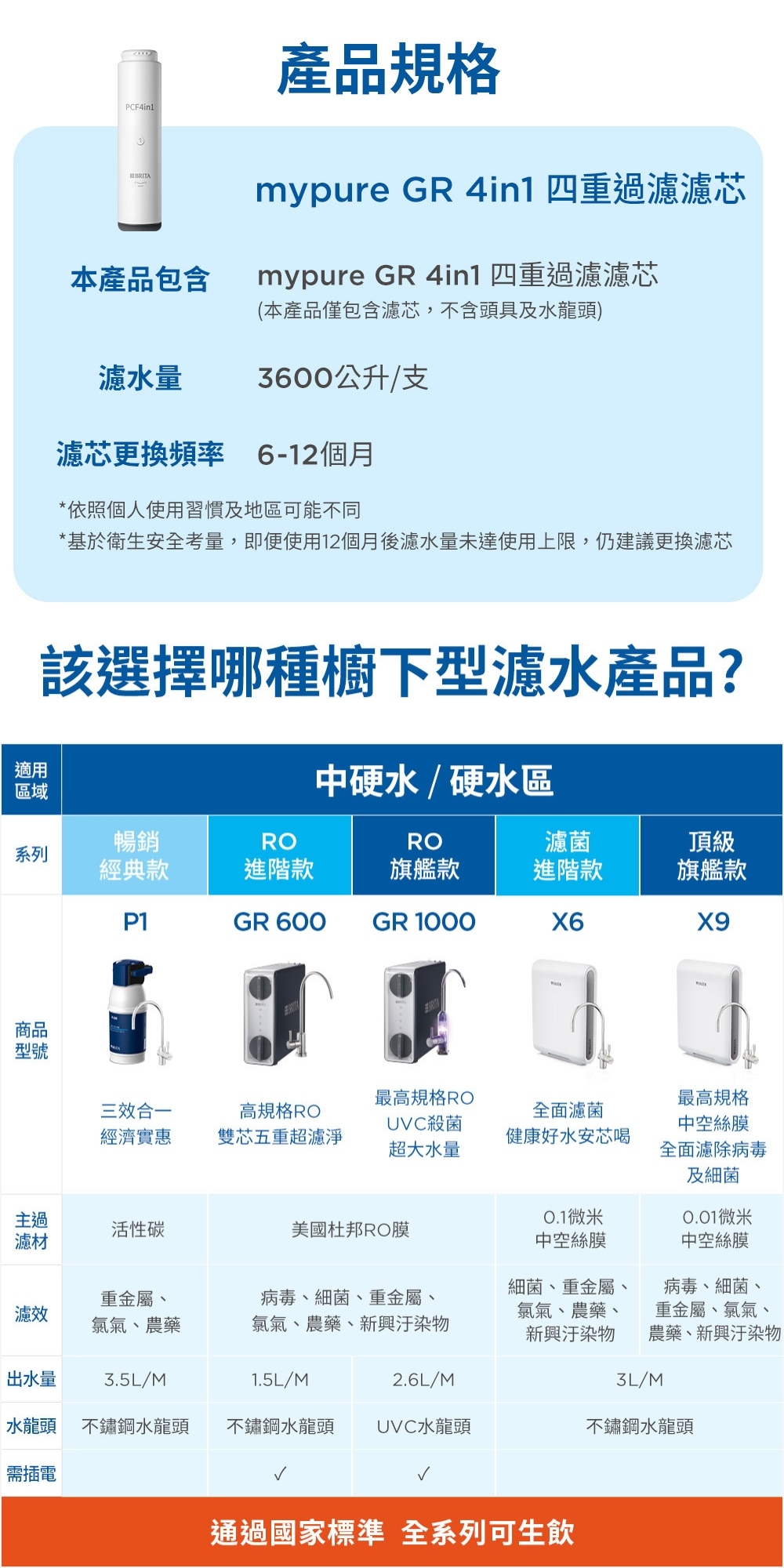 | 商品名稱 | mypure GR 600|GR 1000 第一道 四重過濾濾芯 |