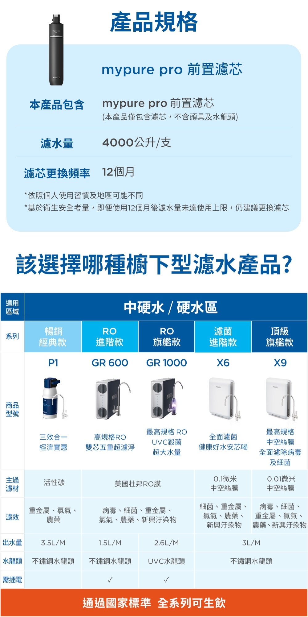 | 注意事項 2 | 即使濾芯處理水量未達上限,為避免濾材生菌數超標,最慢 12 個月需更換一次。 |