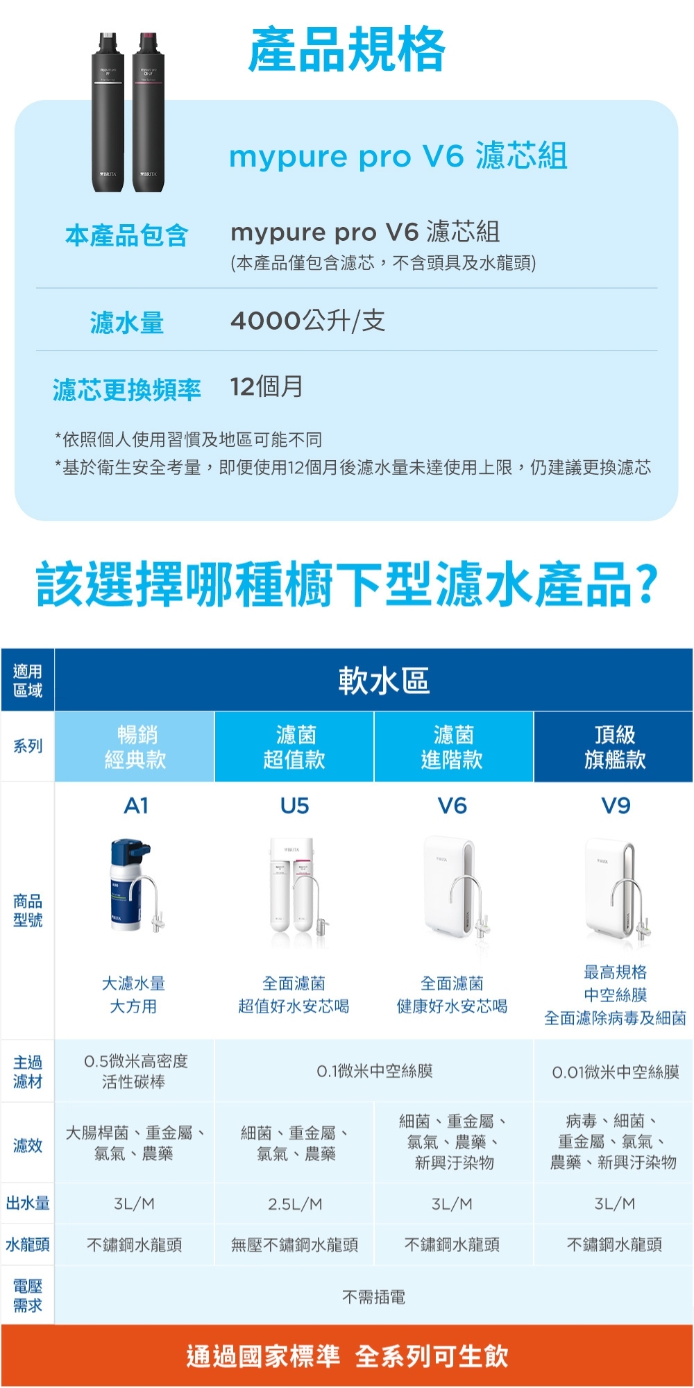 | 商品名稱 | mypure pro V6 雙道濾芯組 |