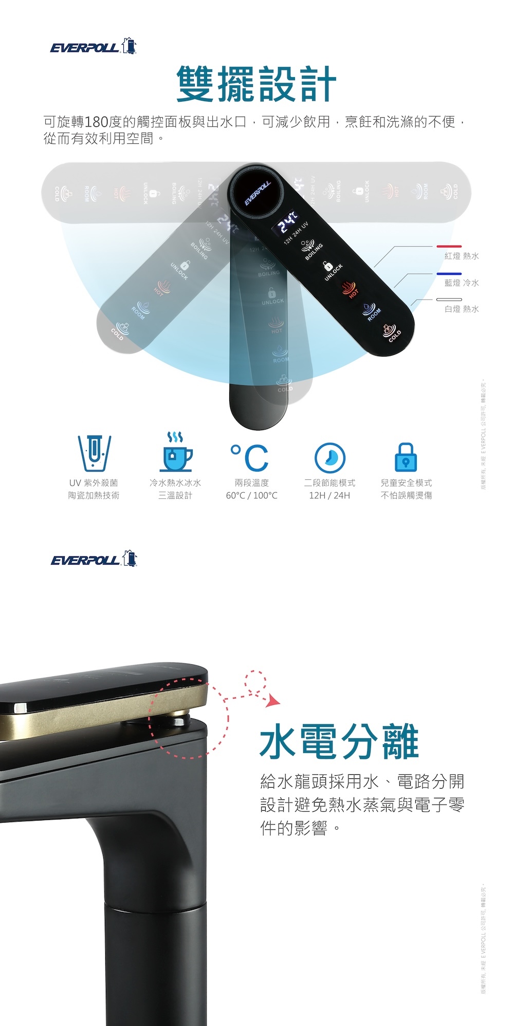 | 出水溫度 | 4℃・常溫・100℃|即開即飲|切換熱水溫度需稍候 |