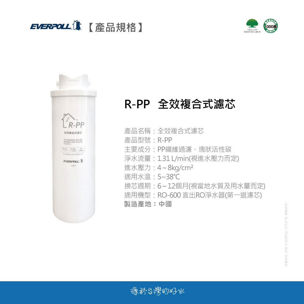 | 更換週期 | R-PP 6~12 個月|R-RO 24 個月|R-AC 6~12 個月 |
