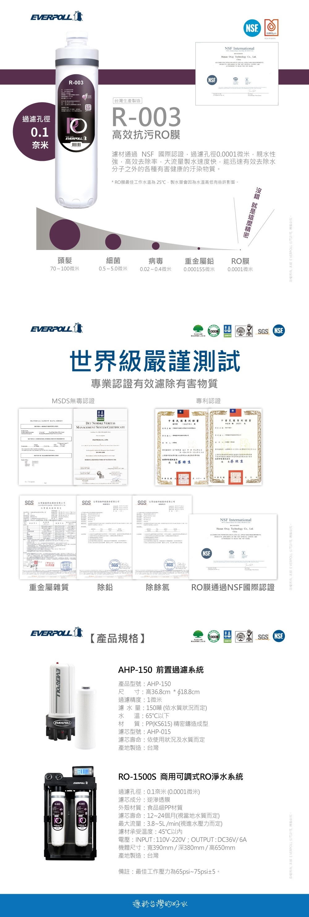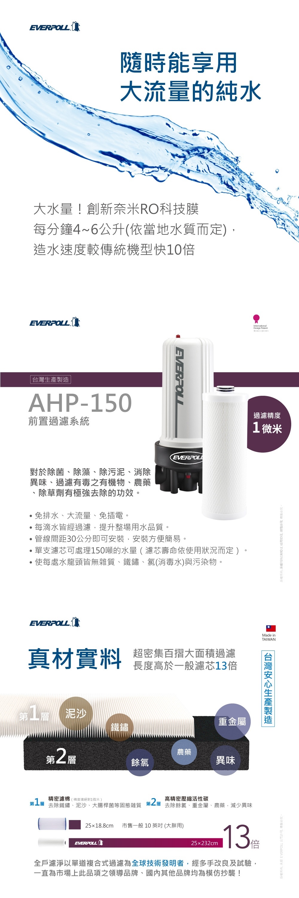 💧 前置【AHP-150】+淨水器【RO-1500S】