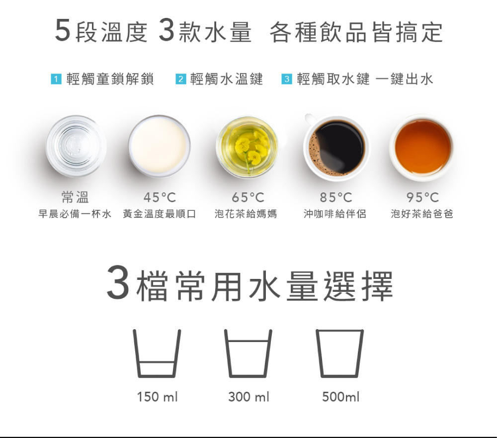 | 出水溫度 | 常溫・45℃・65℃・85℃・95℃|共 5 段 |