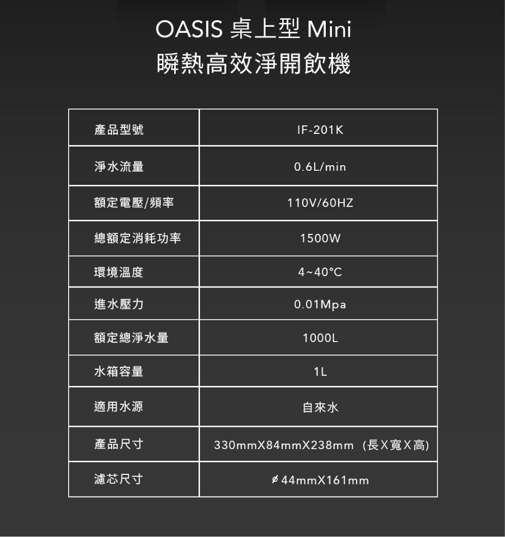 | 商品名稱 | 桌上型 mini 質感瞬熱雙溫飲水機 |