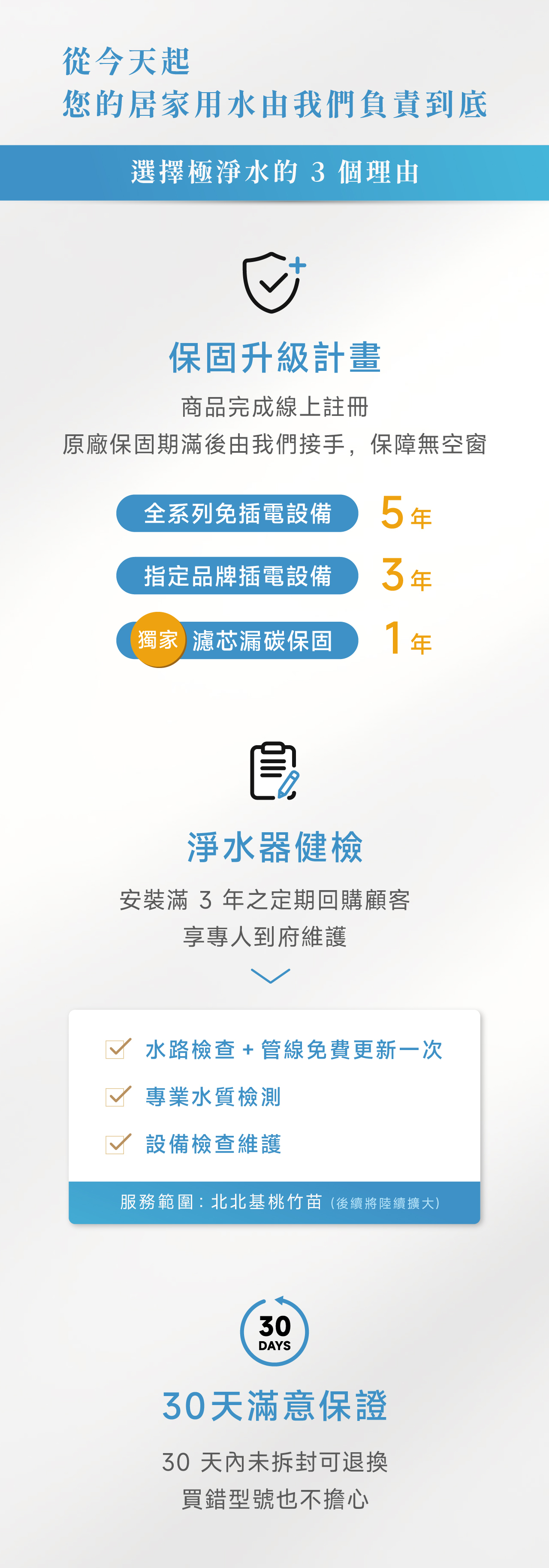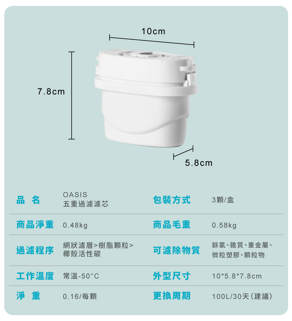 | 注意事項 | 即使濾芯處理水量未達上限,為避免濾材生菌數超標,最慢 12 個月需更換一次。 |