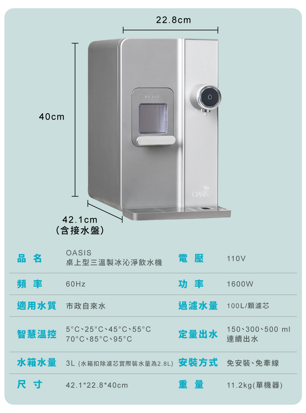 | 商品名稱 | 桌上型 冰上奇機 三溫製冰沁涼飲水機 |