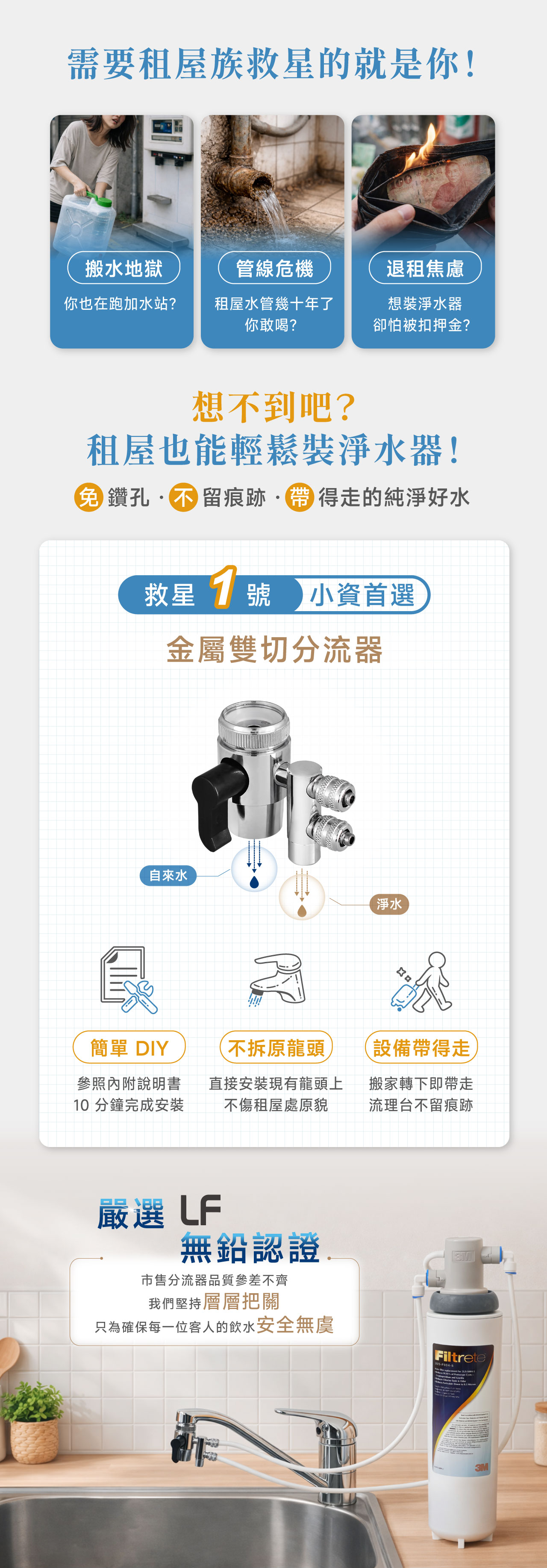 💧【租屋首選】=淨水器【S004】+配件【金屬雙切分流器】