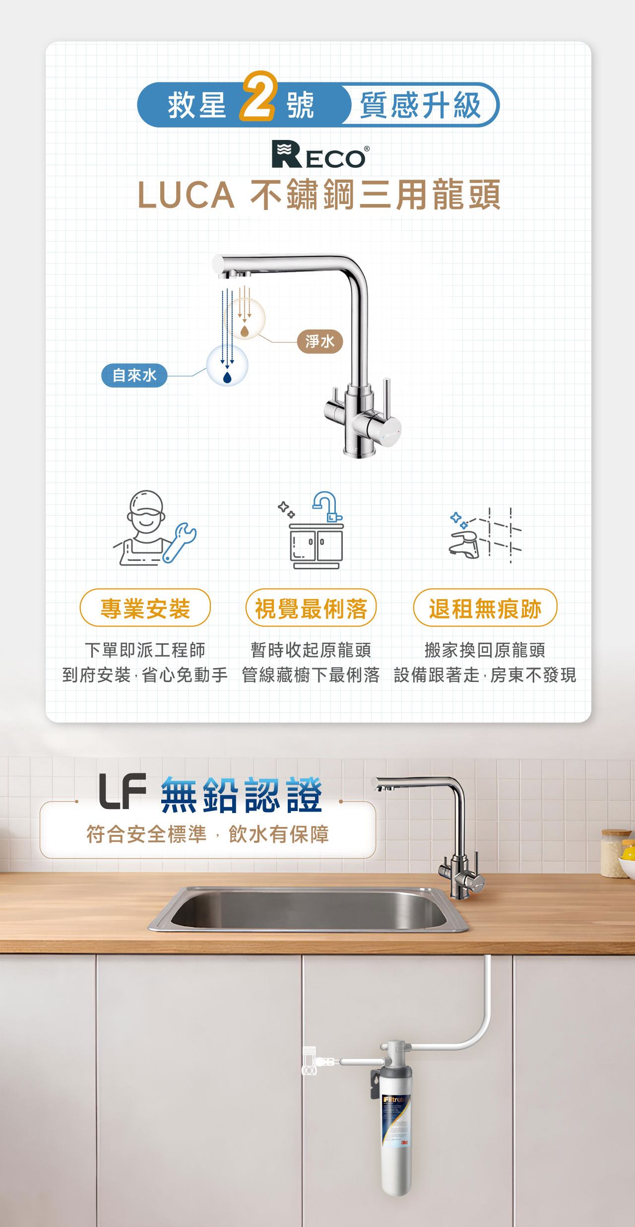 💧【質感升級】=淨水器【S004】+配件【不鏽鋼三用龍頭】